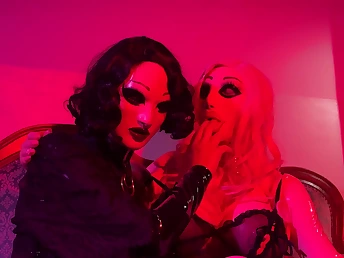 Candy T and Krissyjoh take turns getting their tight holes drilled on touching a corner